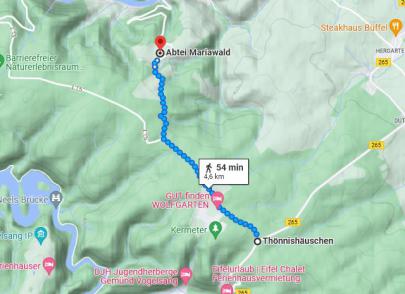 Wer nicht mitwandert, kann direkt mit dem Auto nach Mariawald fahren!